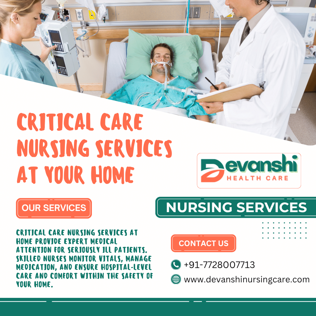 When a loved one needs specialized medical attention after a serious illness, injury, or surgery, providing round-the-clock hospital care can become overwhelming. Devanshi Health Care offers the perfect solution through Critical Care Nursing Services at Home in Janakpuri, Ghaziabad. Their expert ICU-trained nurses ensure patients receive hospital-level care while staying in the comfort and safety of their homes.